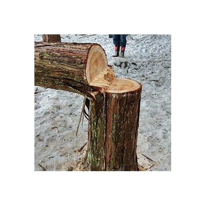 そこで教本では、厚生労働省「チェーンソーによる伐木等作業の安全に関するガイドライン(令和2年1月31日付け基発0131第1号)」に準拠しつつ、より安全性を重視した基準を採用し、手鋸を用いた伐木作業を安全に行うための基本事項について解説しています。たとえば、ドイツの伐倒基準(受け口角度は45~60°、受け口深さは直径の1/5~1/3)を採用しています。